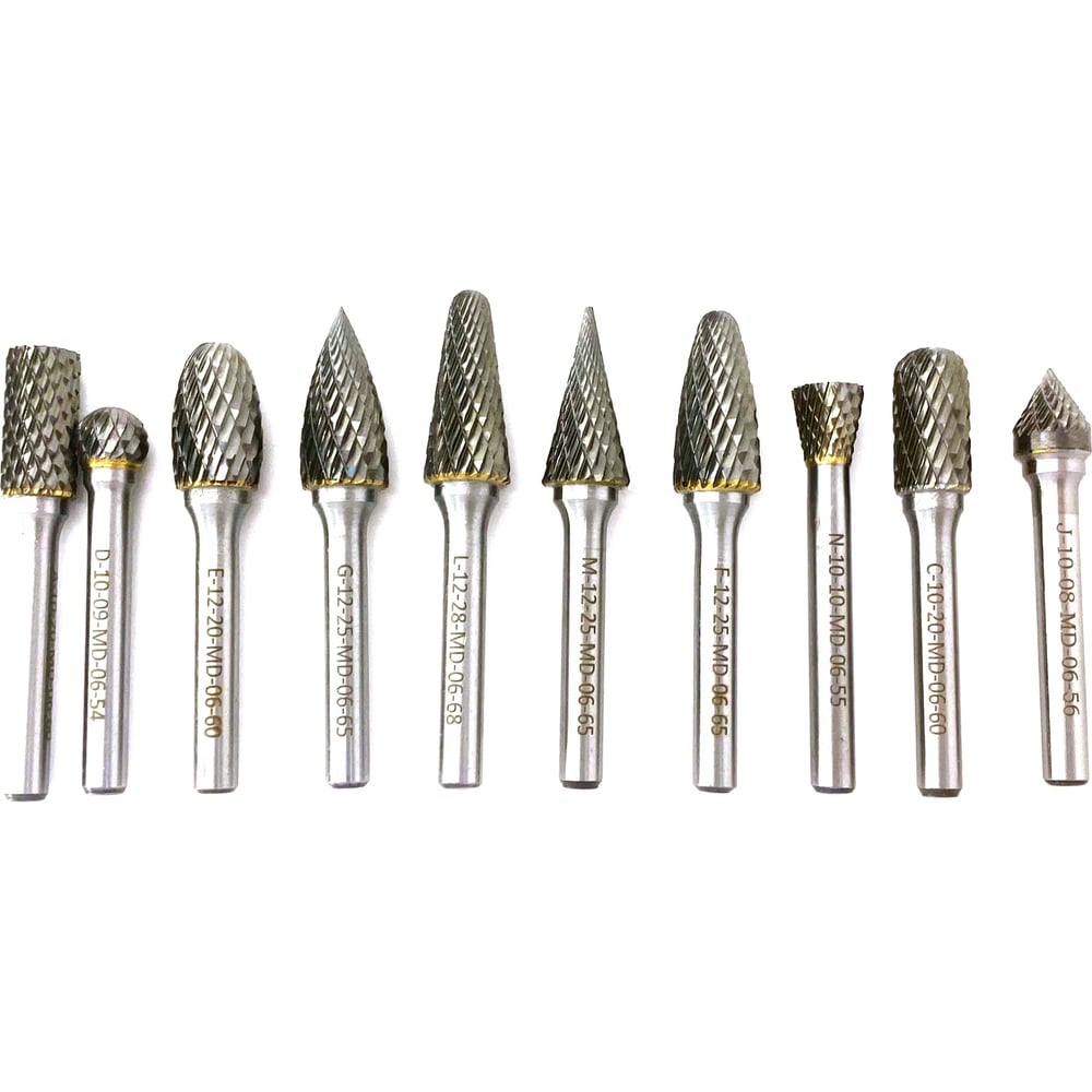 Набор бор-фрез твердосплавных тип A, B, C, D, E, F, G, H, L, M, 10 мм, Bohre КБ011199