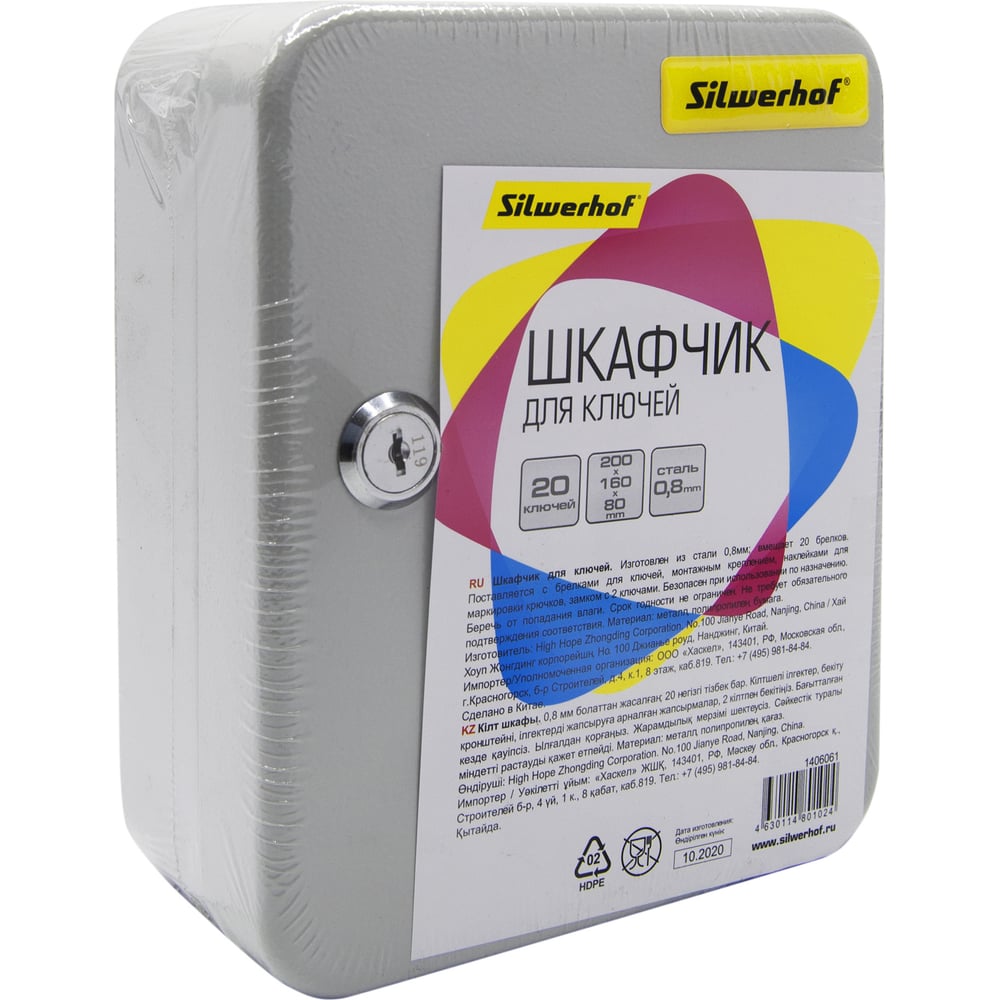 Шкафчик для ключей SILWERHOF на 20 ключей 200x160x80 мм комплект 20 брелков серый металл 1406061