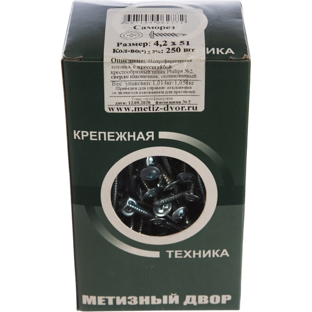 Саморез с прессшайбой Метизный двор сверло 4,2x51, 250 шт. 4607159062772