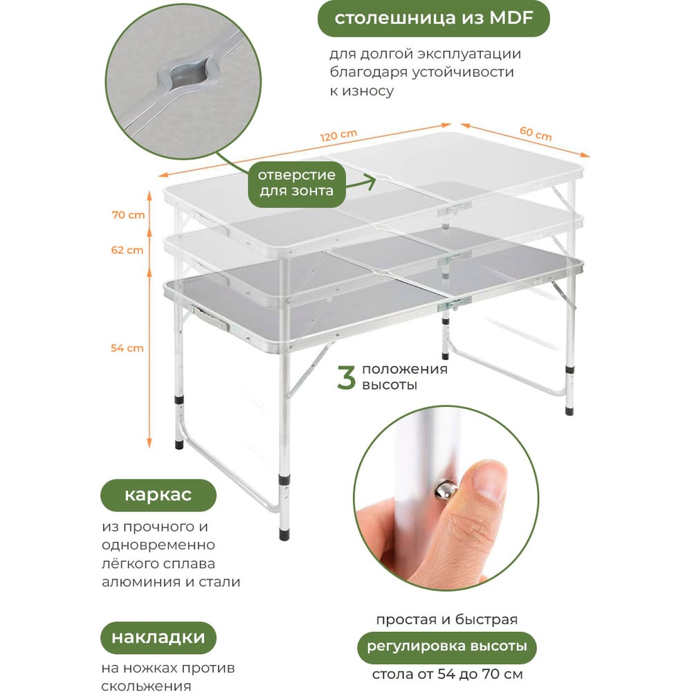Складной стол со стульями для кемпинга WMC TOOLS 120x60x50/60/70 см WMC-09517M(56319)