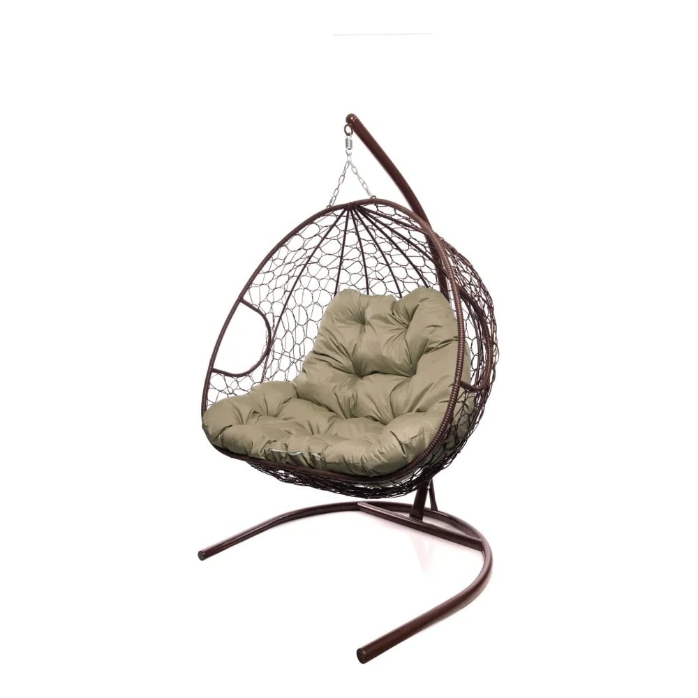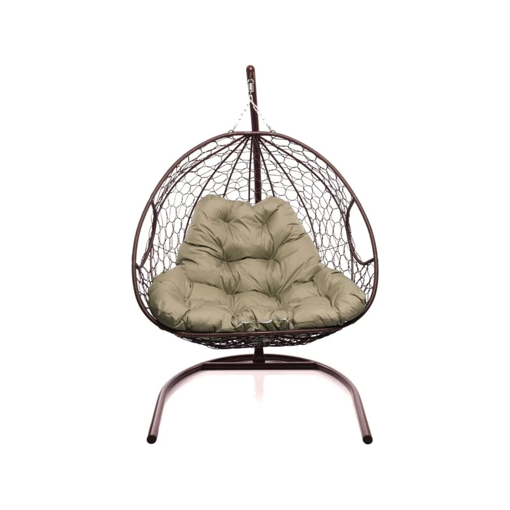 Подвесное кресло M-GROUP ДЛЯ ДВОИХ с ротангом коричневое, бежевая подушка 11450201