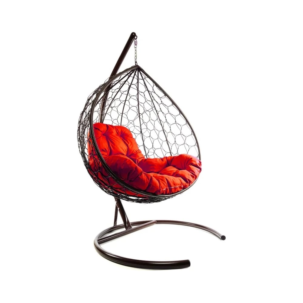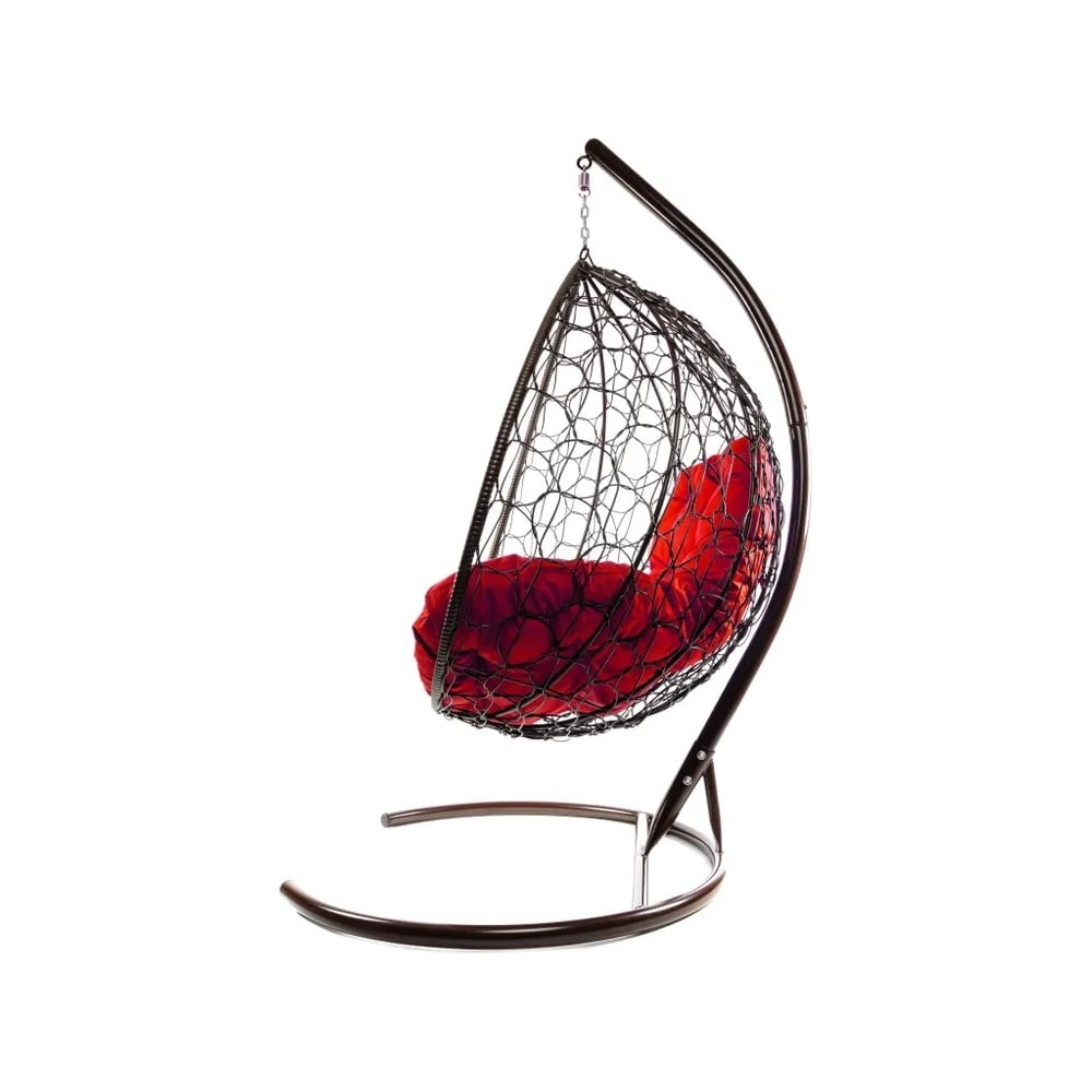 Подвесное кресло M-GROUP XL с ротангом коричневое, красная подушка 11120206