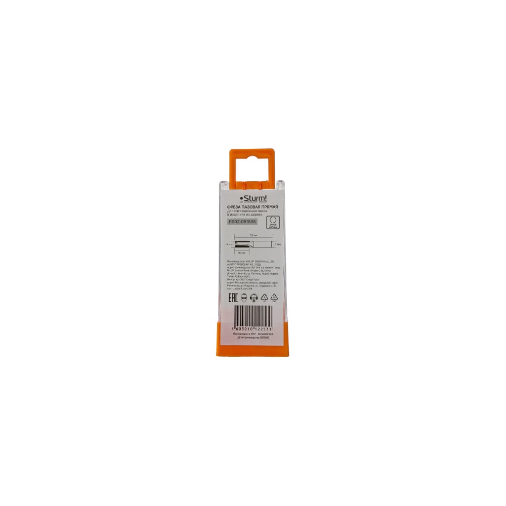 Фреза пазовая прямая с двойным лезвием DxHxL 6x16x53 мм, хв-к 8 мм Sturm RB02-081606