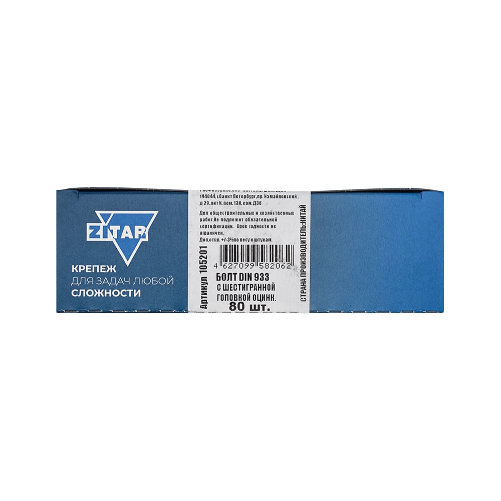 Болт DIN933 с шестигранной головкой оцинкованный М6x20 мм, 80 шт, коробка с окном Zitar 105201
