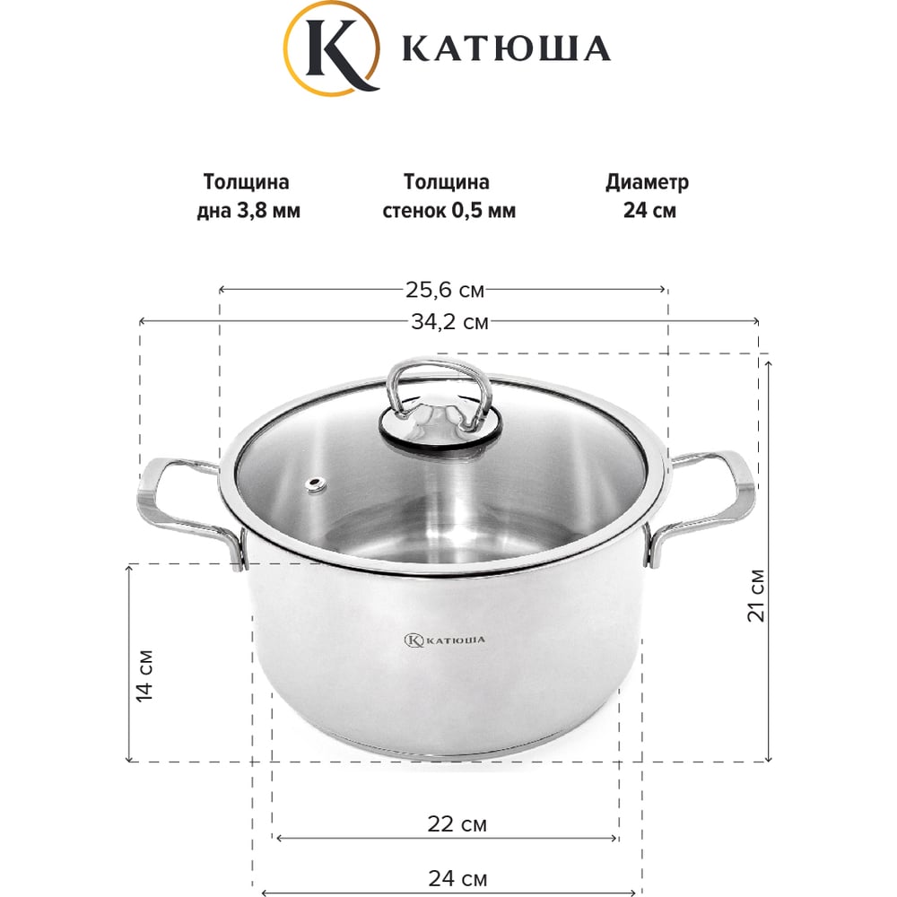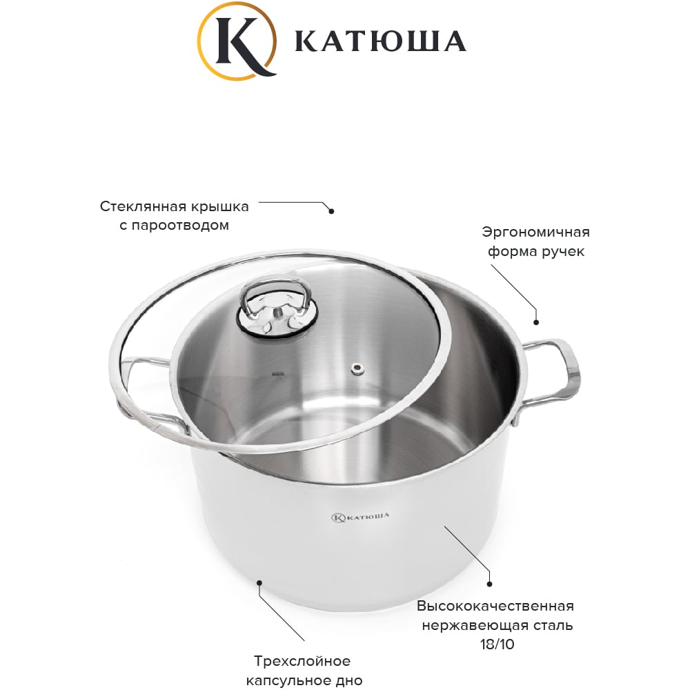 Кастрюля КАТЮША Марта нержавеющая сталь, 6,7 л, 24x14 см, стеклянная крышка 100-24-0