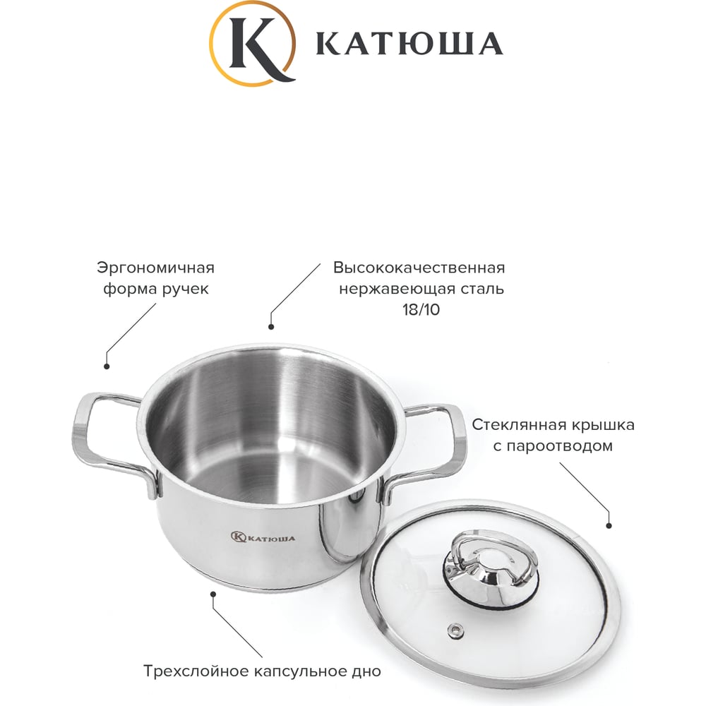 Ковш КАТЮША Марта нержавеющая сталь, 1,6 л, 16x09 см, без крышки 110-16-0