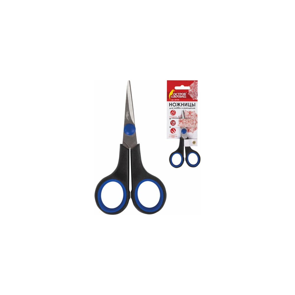 Ножницы для хобби и рукоделия ОСТРОВ СОКРОВИЩ 120 мм, 3-х сторонняя заточка, черно-синие 237104