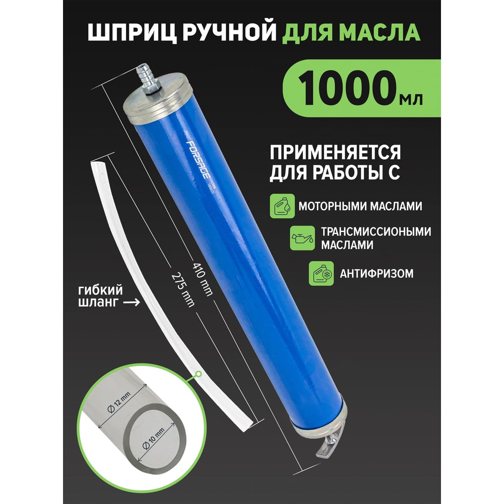 Шприц для масла и других технических жидкостей Forsage с гибким шлангом, 1000 мл, длина шланга 260 мм F-0709(47086)