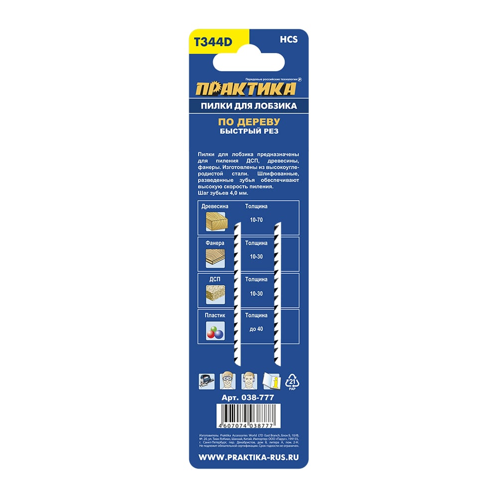 Пилка по дереву (2 шт; T344D) для лобзиков ПРАКТИКА 038-777