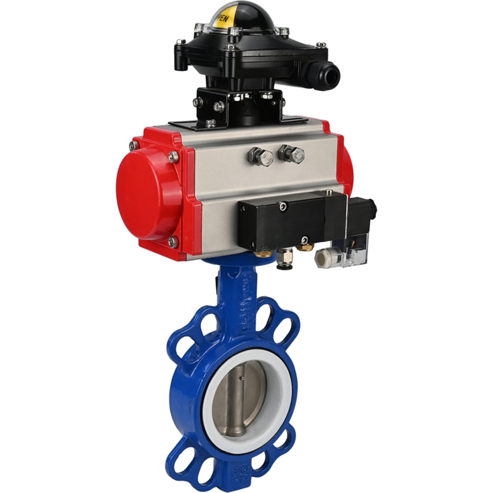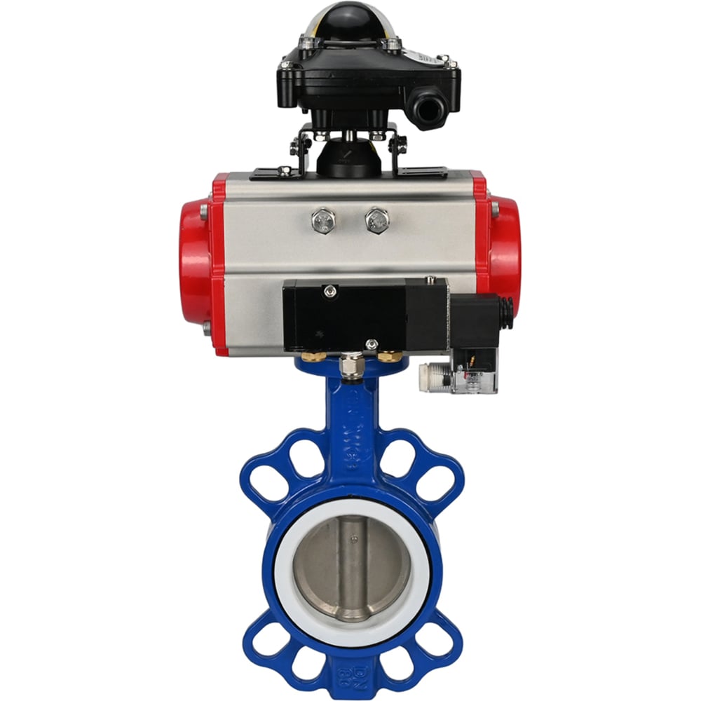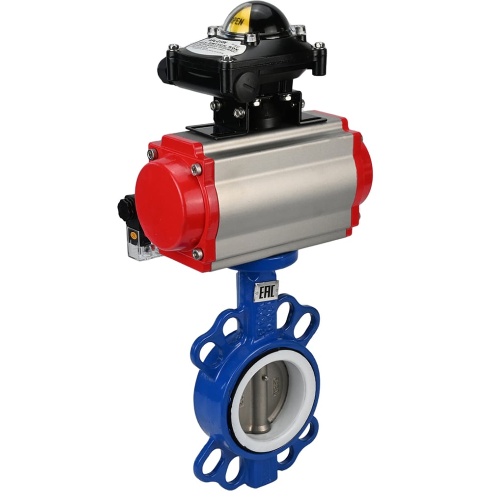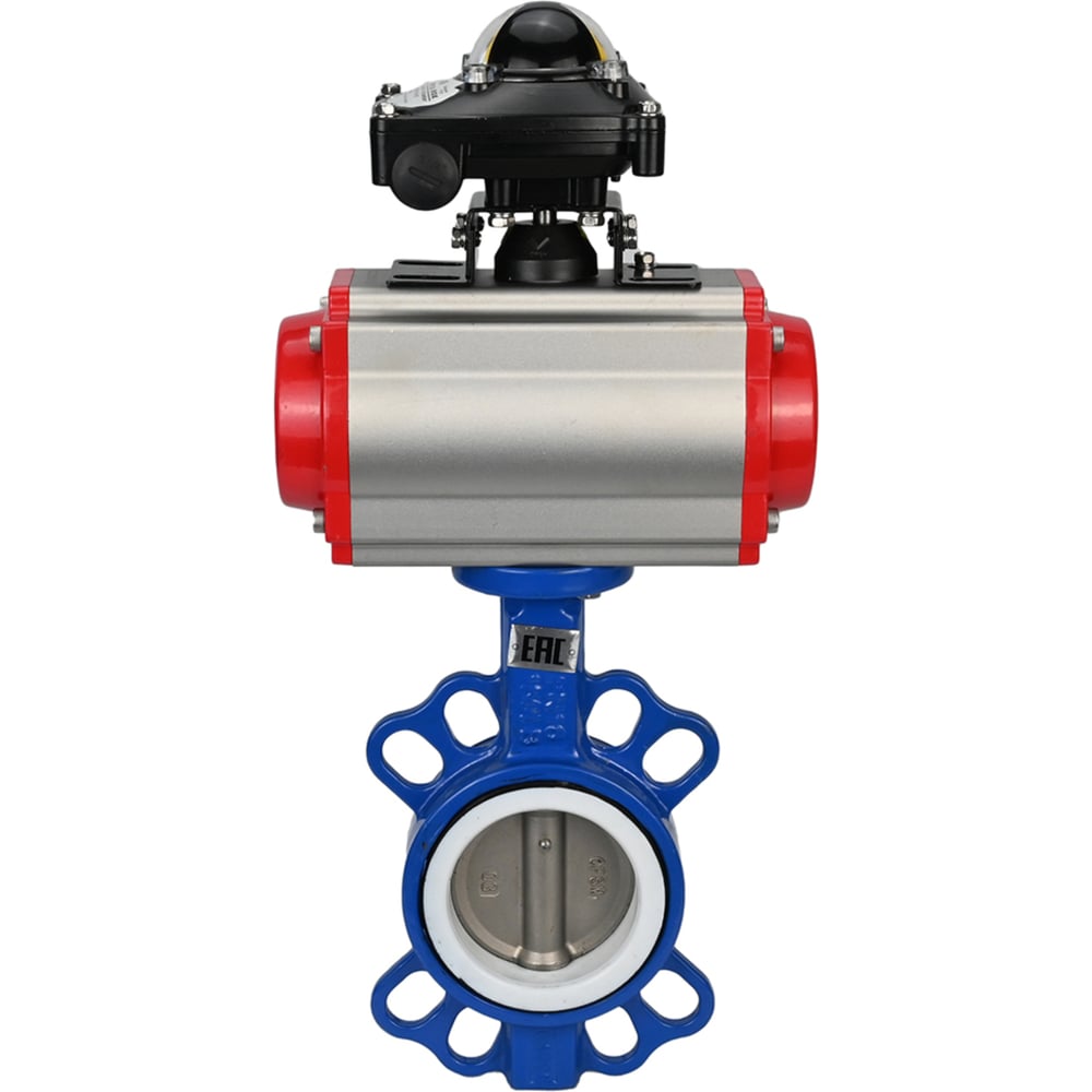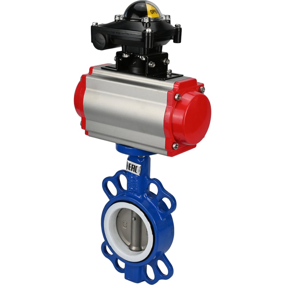 Затвор DN.ru WCB-316L-PTFE Ду80 Ру16 с пневмоприводом, пневмораспределителем, БКВ D050-00364