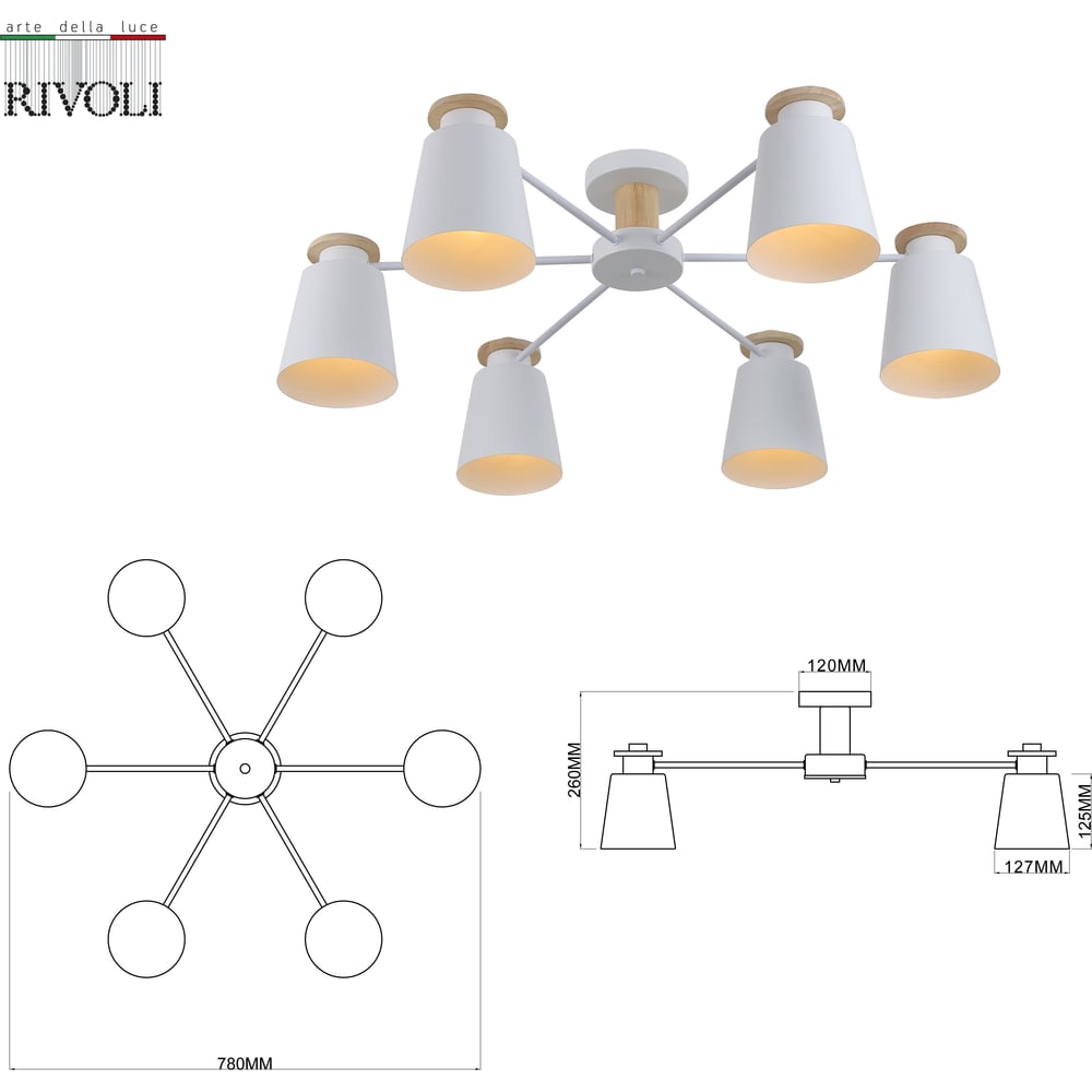 Люстра Rivoli Adna 9112306 6 Е27, 40 Вт, модерн Б0053436