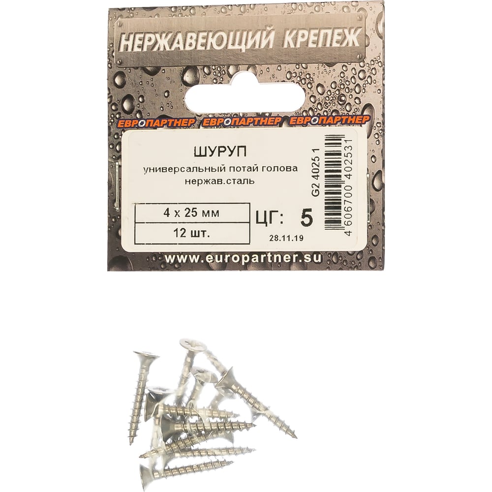 Универсальный шуруп ЕВРОПАРТНЕР с пот. гол. 4х25 нержав. сталь 12 шт. G2 4025 1
