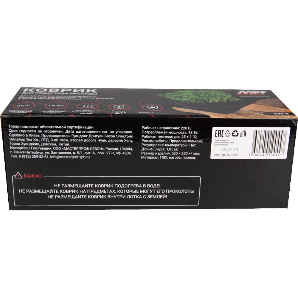 Коврик для подогрева рассады MPF ДС.071458