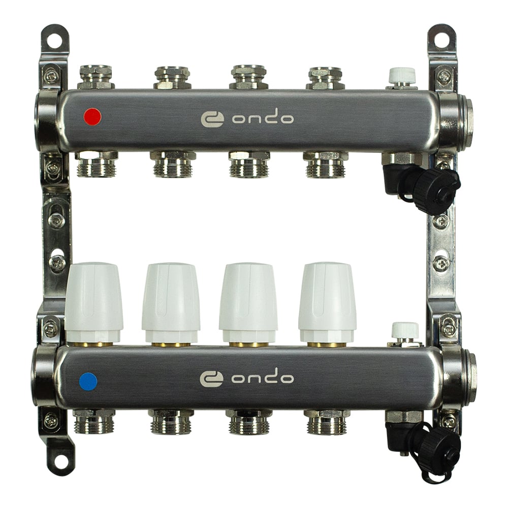Коллекторная группа в сборе с термостатическими и запорными клапанами ONDO нерж сталь, 4 вых. OKGSP004