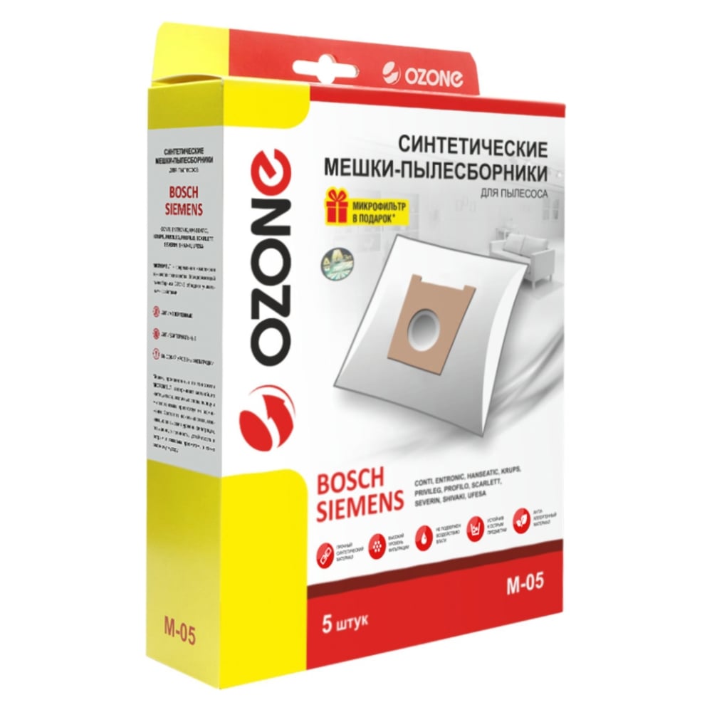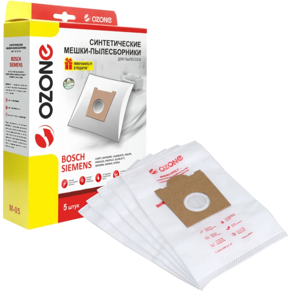 Мешки-пылесборники синтетические (5 шт; с микрофильтром) для пылесоса Bosch/Siemens OZONE M-05