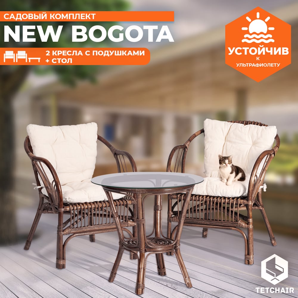 Террасный комплект Tetchair NEW BOGOTA 2 кресла, стол, с подушками, ротанг 13343