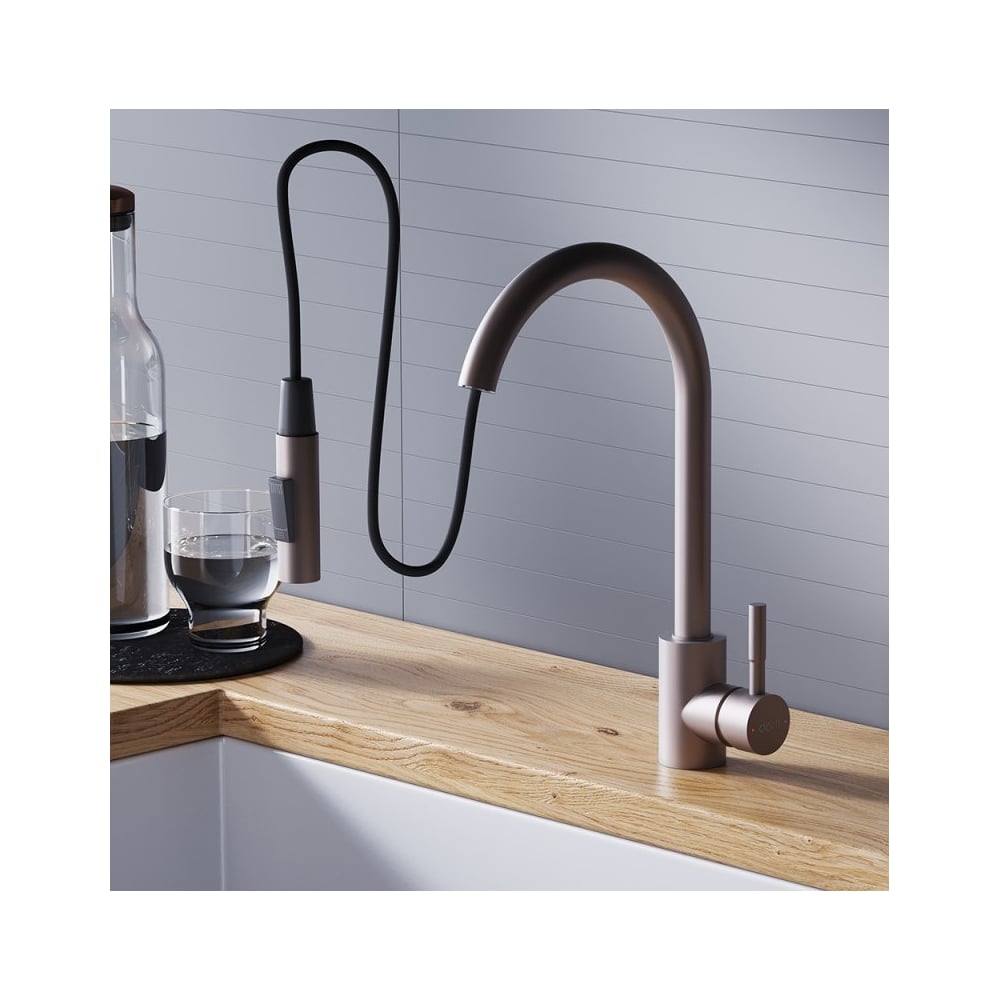 Кухонный смеситель Dorff Logic с вытягивающимся изливом, сатин D3007511