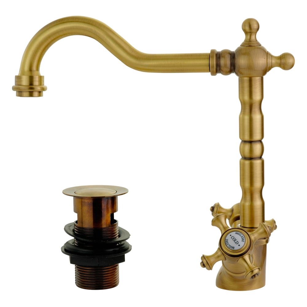 Смеситель для раковины Migliore PRESTIGE излив "змейка", донный клапан "click-clack", бронза 31615