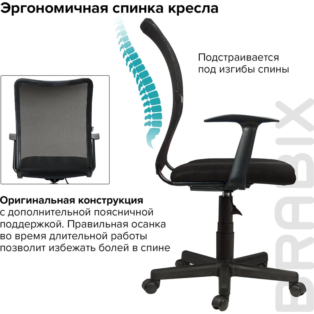 Компьютерное офисное кресло BRABIX Spring MG-307, с подлокотниками, сетка 531406