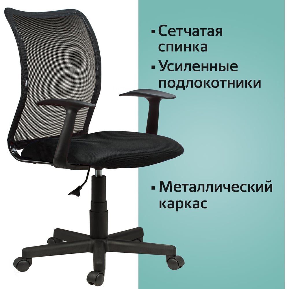 Регулировка высоты сиденья да Требует сборки да Подлокотники да Подъемный механизм да Механизм качания нет Регулировка высоты спинки нет Регулировка высоты подлокотников нет Механизм вращения да Подголовник нет Регулировка наклона спинки нет Подставка для ног нет Max нагрузка 90 кг Ширина сиденья 450 мм Глубина сиденья 450 мм Ширина спинки 440 мм Высота спинки 540 мм Min высота сиденья 470 мм Мах высота сиденья 590 мм Поясничный упор нет Цвет спинки черный Материал крестовины пластик Материал подлокотников пластик Цвет сиденья черный Материал обивки сетка/ткань Ортопедическое нет