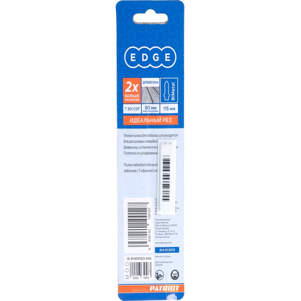 Пилка для лобзика по дереву T301CDF (2 шт.) EDGE by PATRIOT 814010012