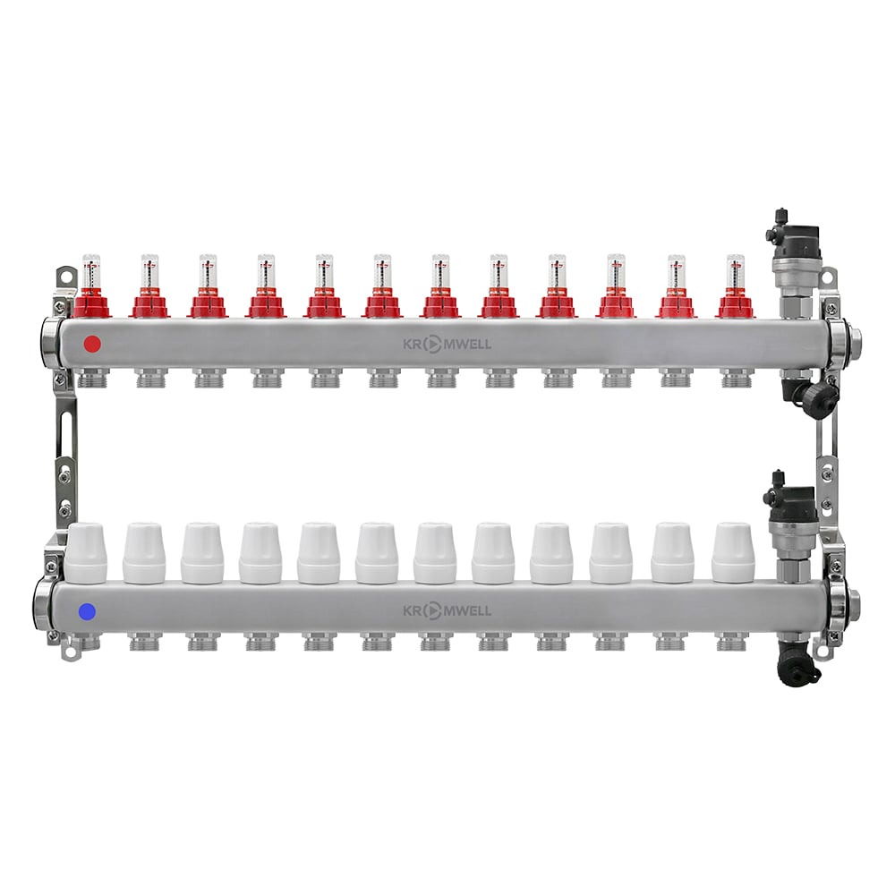 Коллекторный блок KROMWELL из нерж. cтали с расходомерами, в комплекте 1", 12x3/4", "евроконус" KW.SM6006125