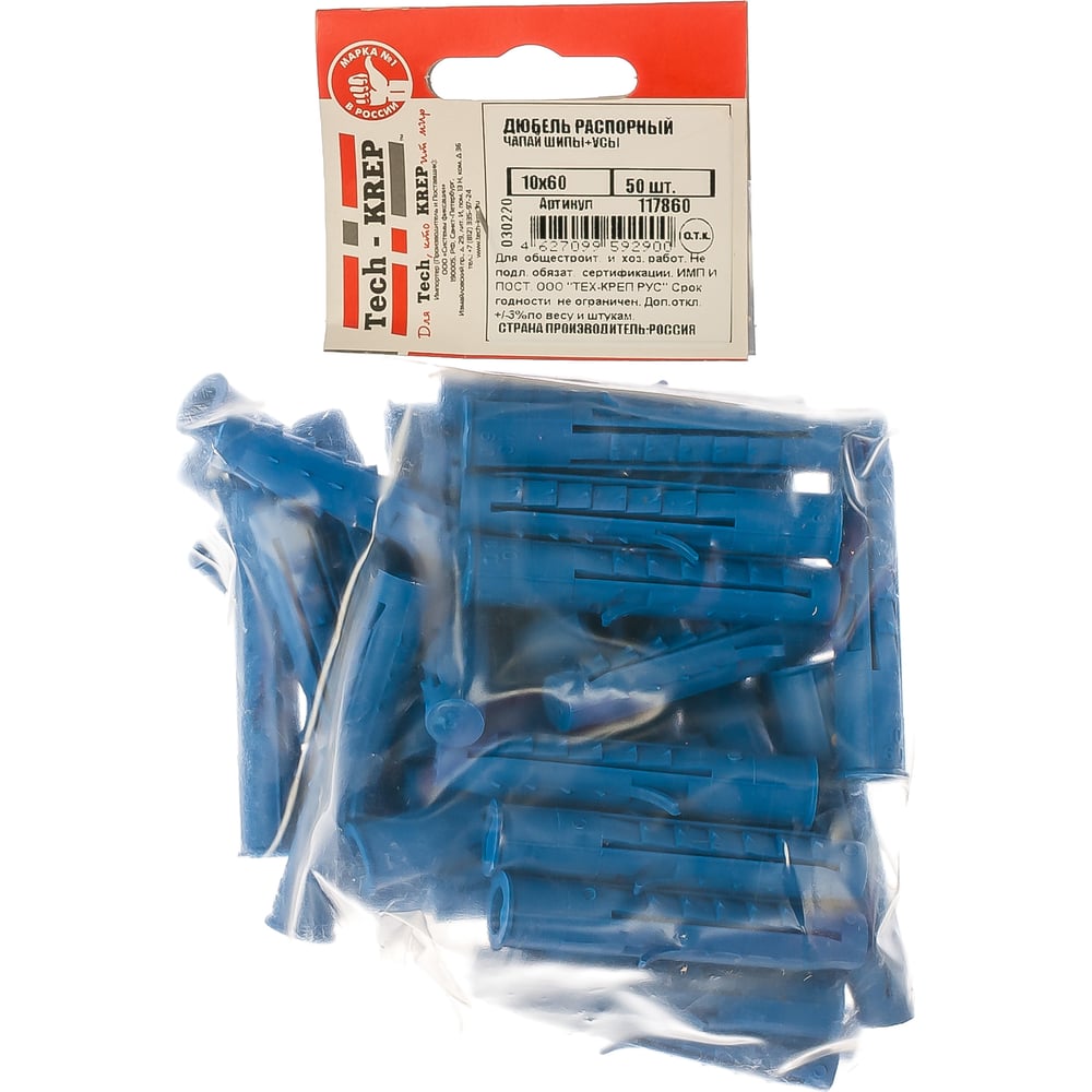 Распорный дюбель Чапай 10х60 шипы+усы, полипропилен 50шт - пакет Tech-Krep 117860