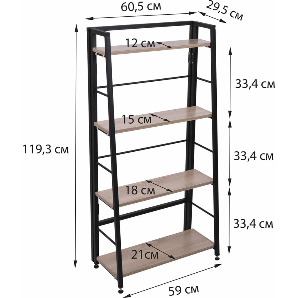 Стеллаж BRABIX "Smart SH-007", 605x295x1193 мм, ЛОФТ, трапеция, складной, металл/ЛДСП дуб каркас 641872