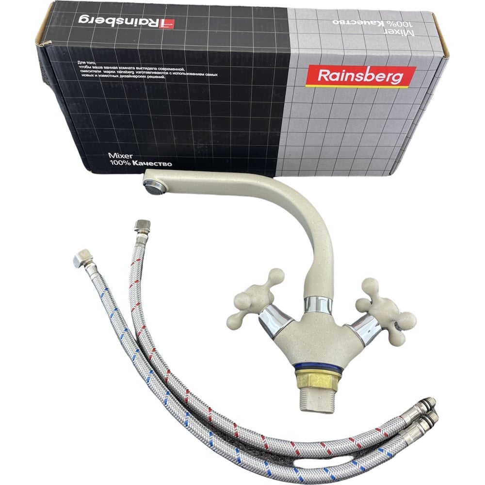 Смеситель для кухни Rainsberg двухвентильный, из силумина, бежевый (песочный гранит) R5043KF-3