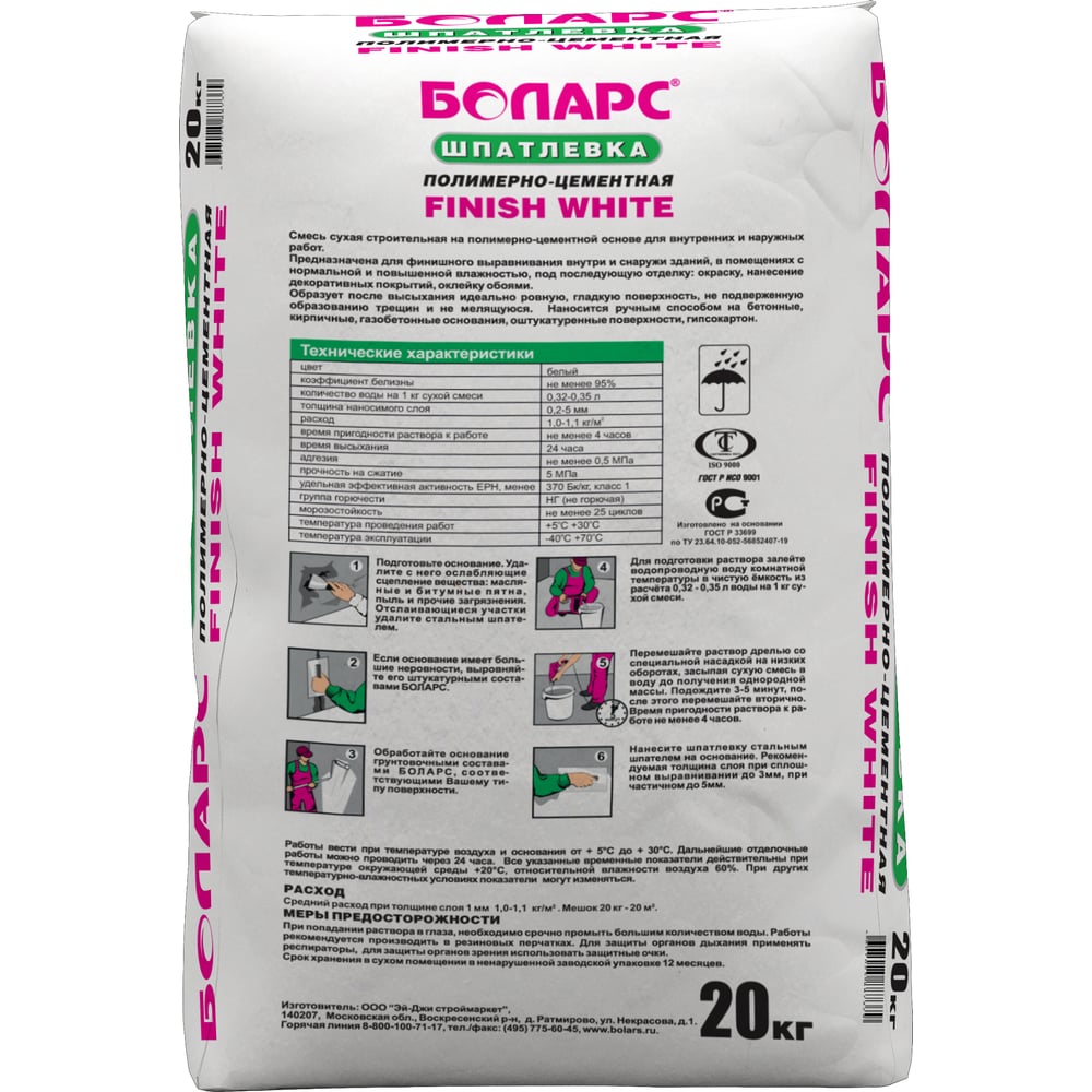 Шпатлевка БОЛАРС Finish White полимерно-цементная, 20 кг 00000037752