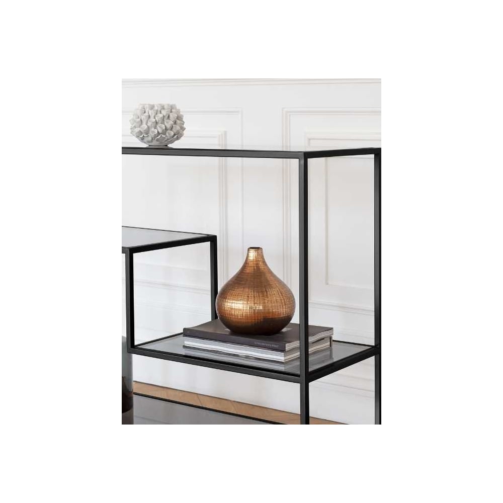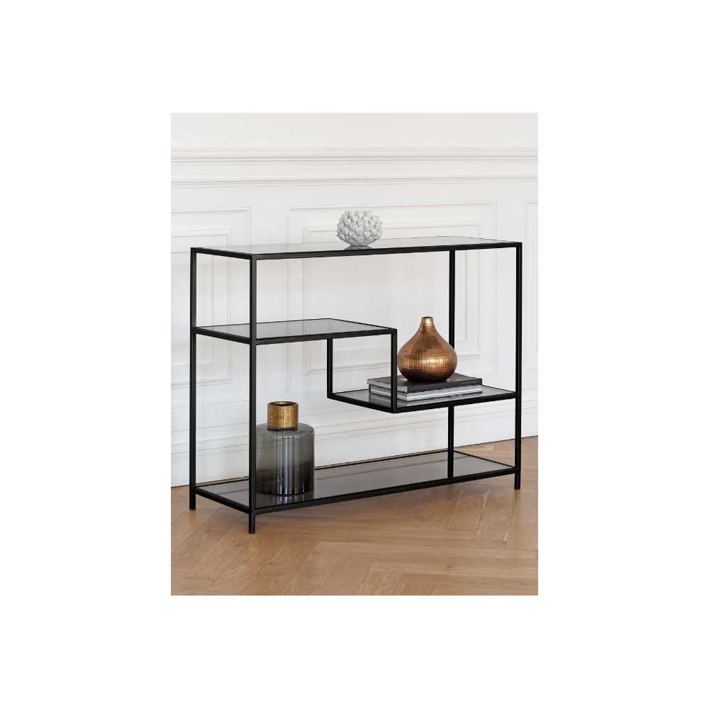 Консоль GreenWeen JAQLENE черный каркас, столешница тонированное стекло, 1000x350x810, GW-KONS-JAQLENE-B-G
