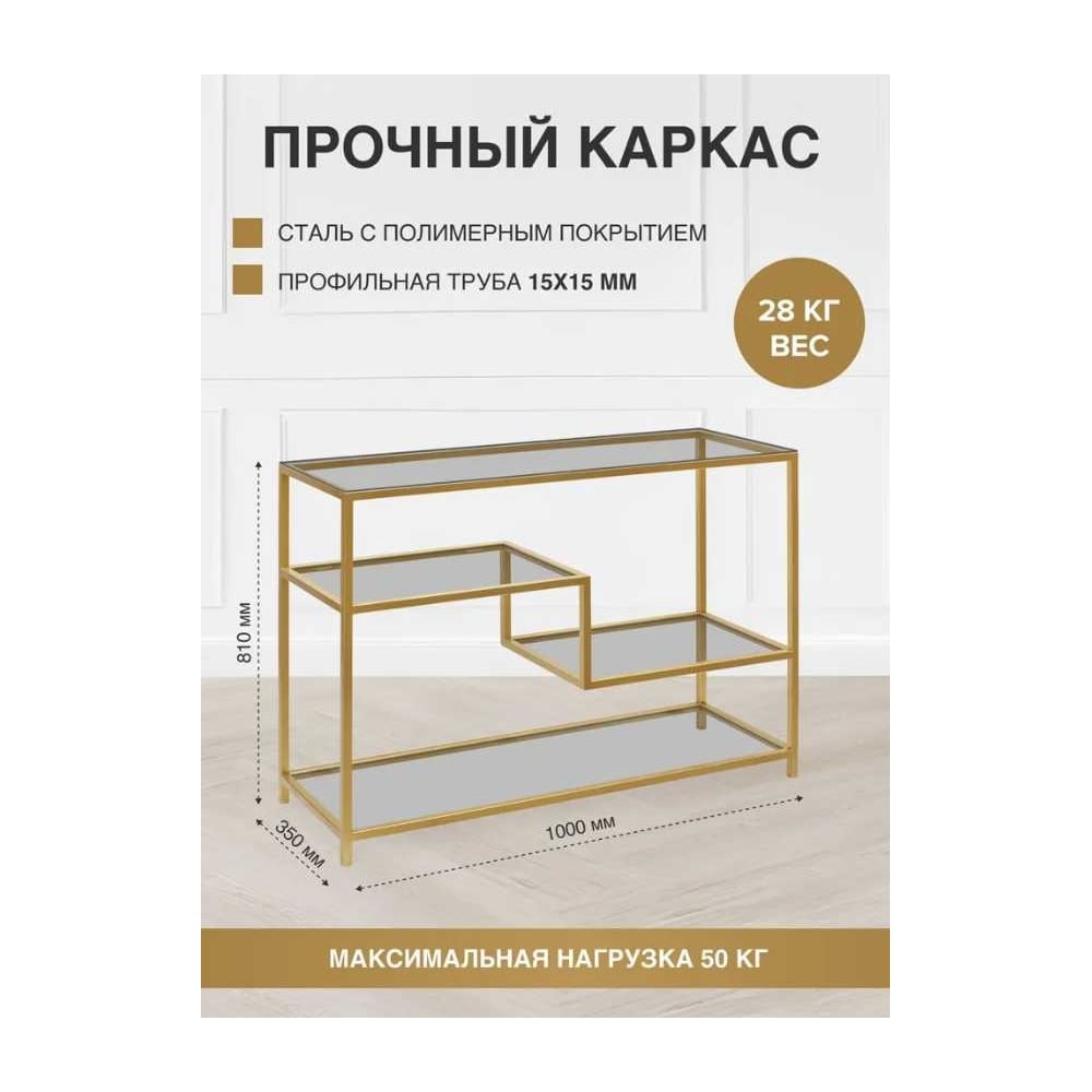 Консоль GreenWeen JAQLENE золотой каркас, столешница тонированное стекло, 1000x350x810, GW-KONS-JAQLENE-G-G