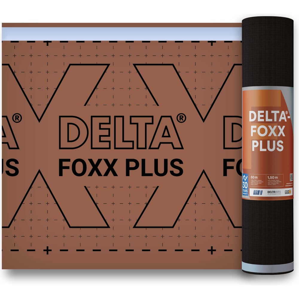 Мембрана диффузионная Delta для водонепроницаемой нижней кровли, малый угол наклона, FOXX PLUS, 1,50x50 м 2202728 2211388