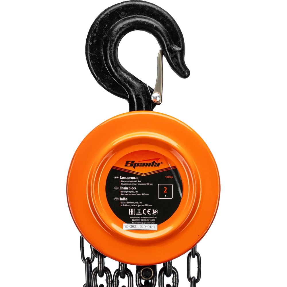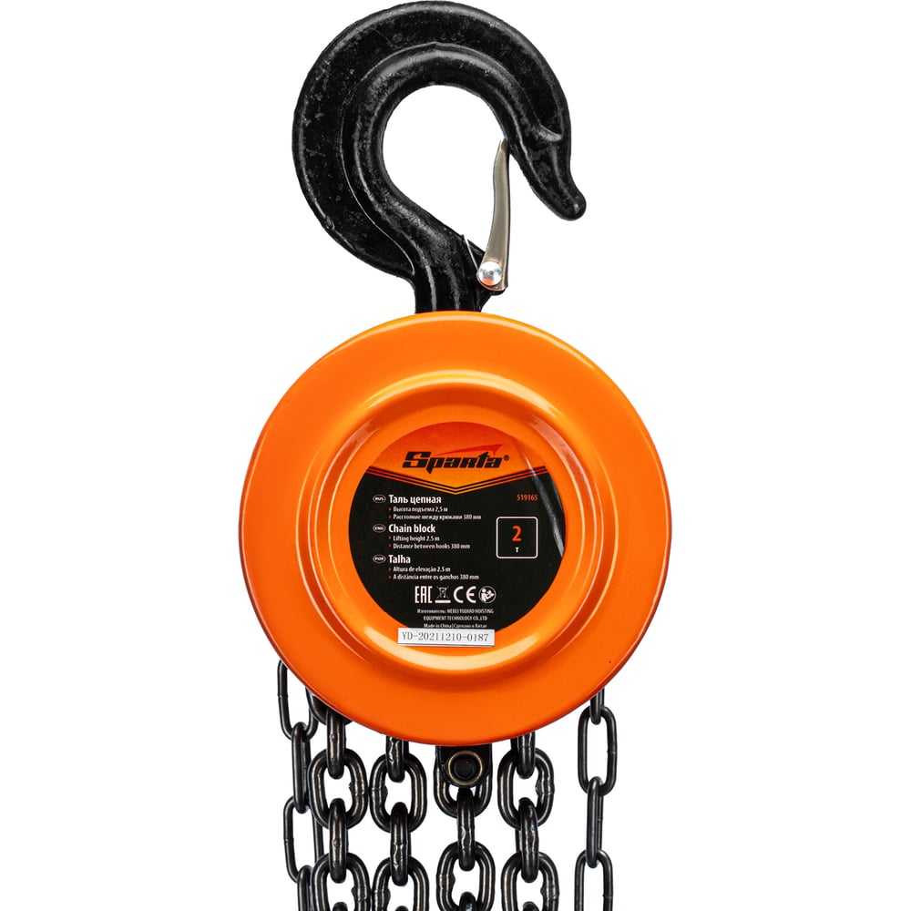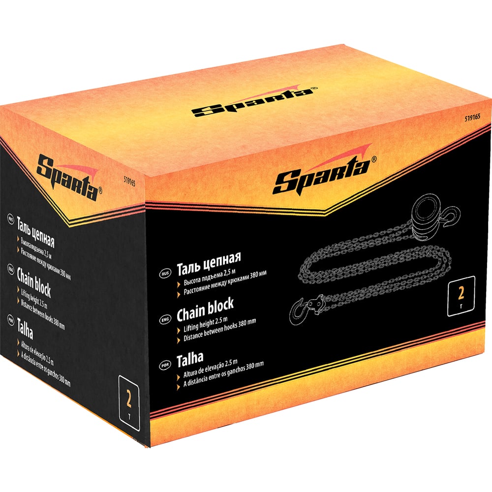 Цепная таль SPARTA 2 т, h подъема 2,5 м, расстояние между крюками 380 мм// 519165