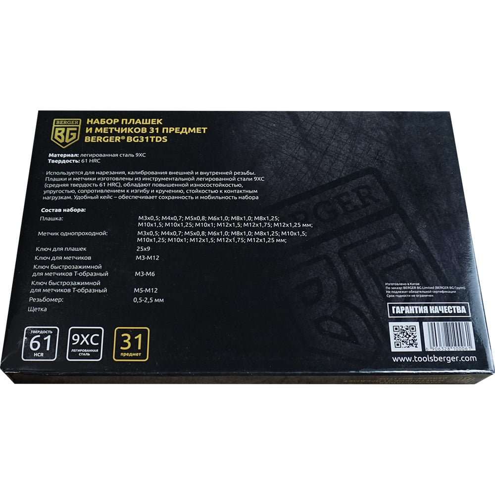 Набор плашек и метчиков 31шт Berger BG BG31TDS