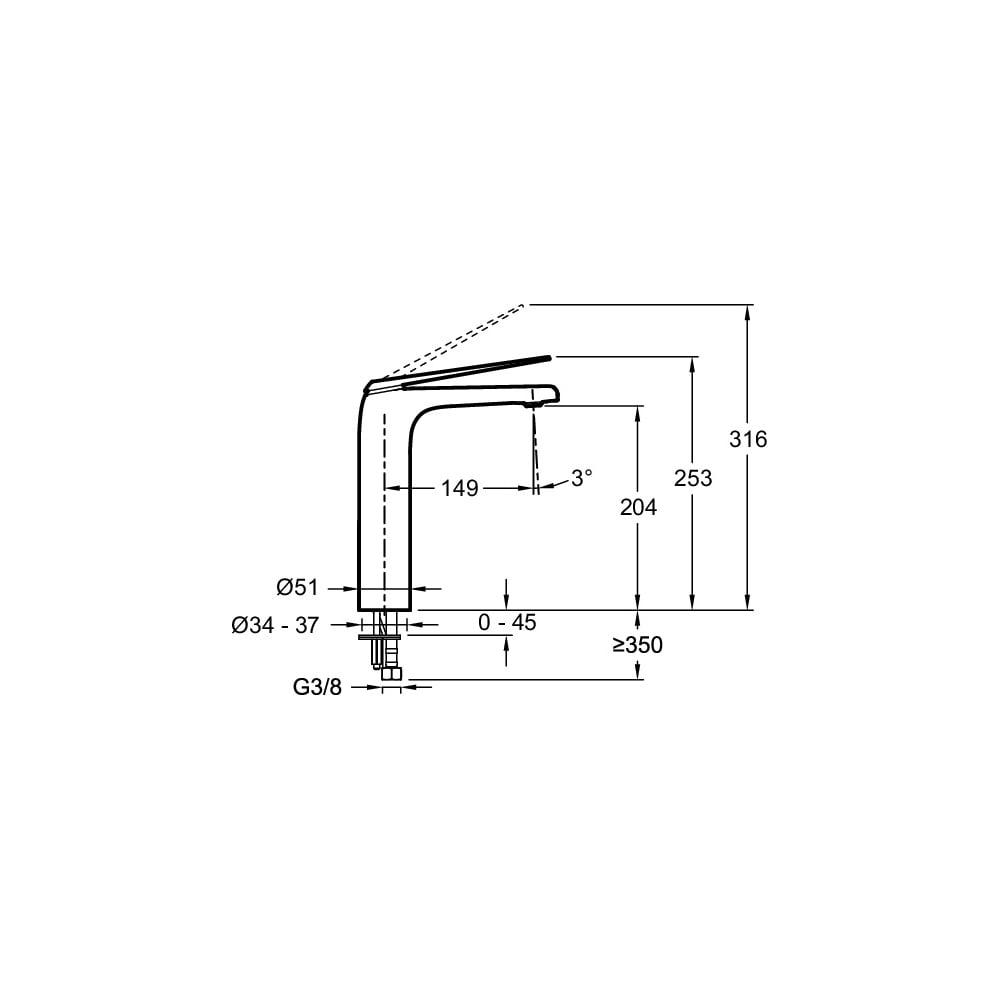 Смеситель для раковины JACOB DELAFON E97347-ND-CP AVID высокий, без донного клапана 00000063303