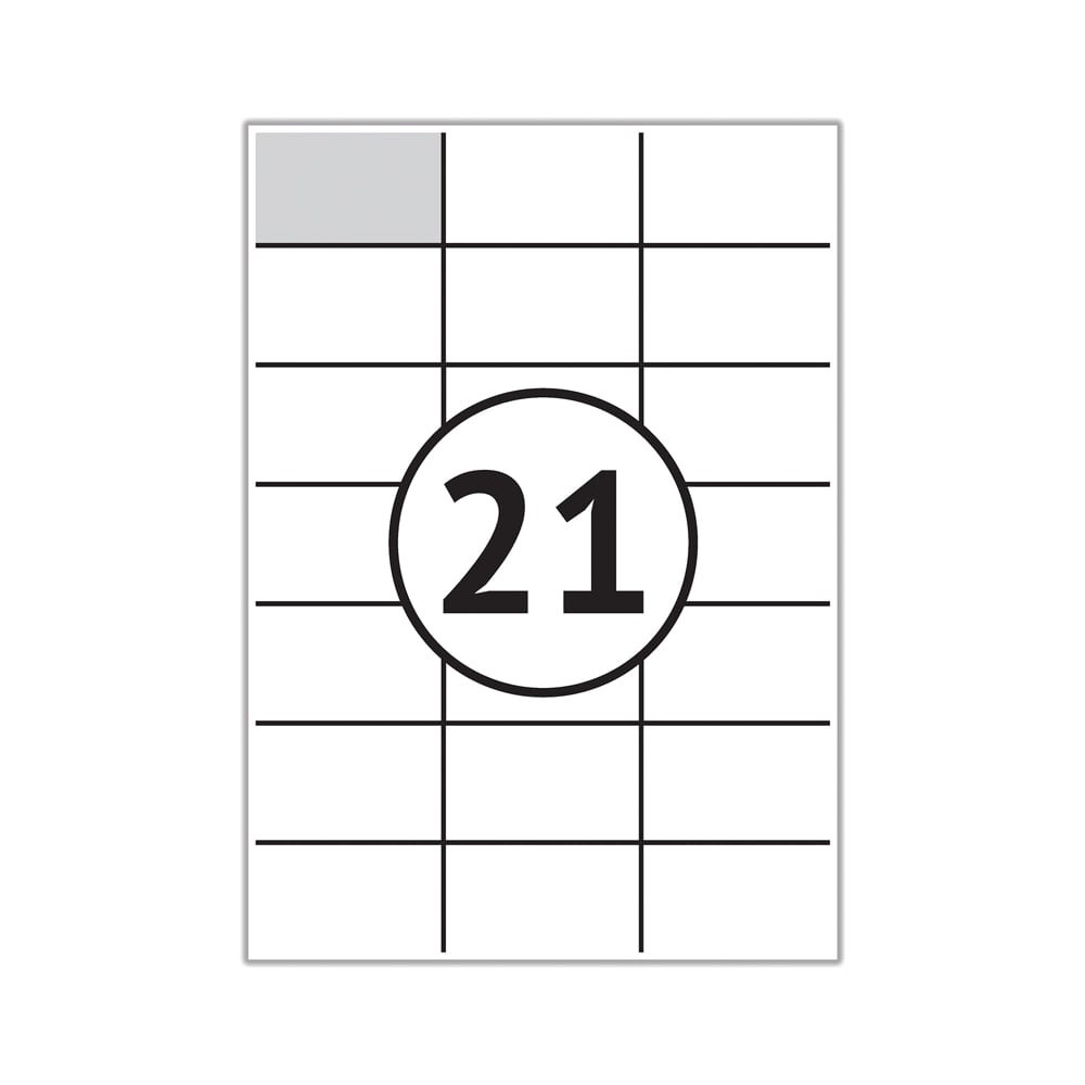 Самоклеящиеся этикетки Office Space А4, 100 листов, белые, 21 фрагмент размером 70х42.3 мм, 70 г/м2 16225