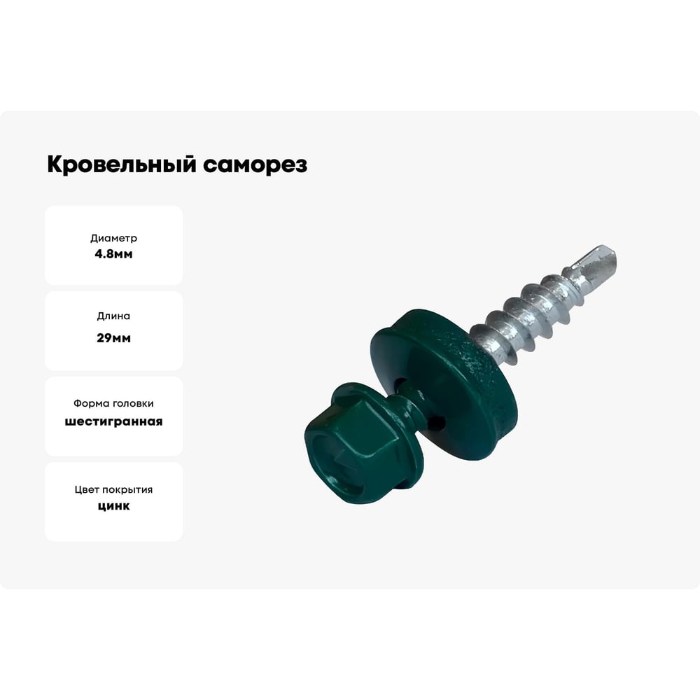 Кровельный саморез Bohrer ПРОМ 4,8x29, RAL 6005 зеленый мох, 4500 шт. SKRAL-4,8х29 RAL6005