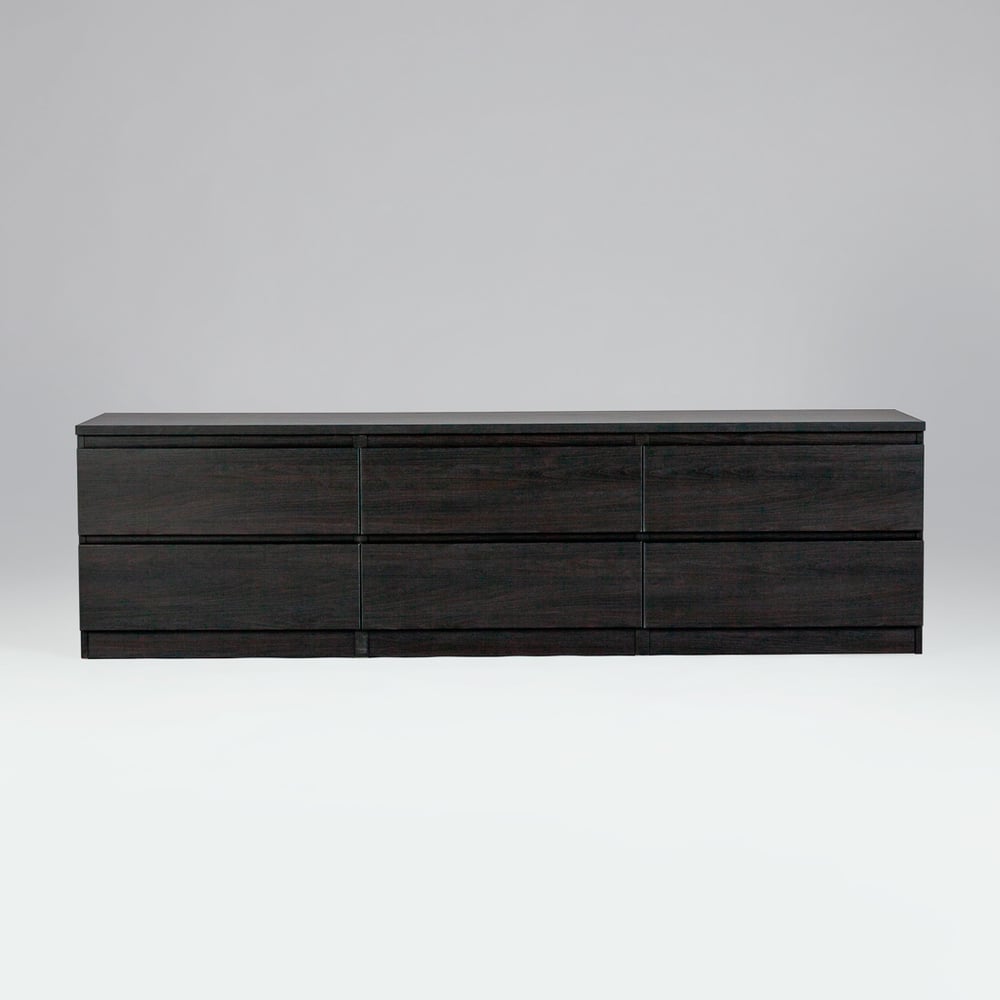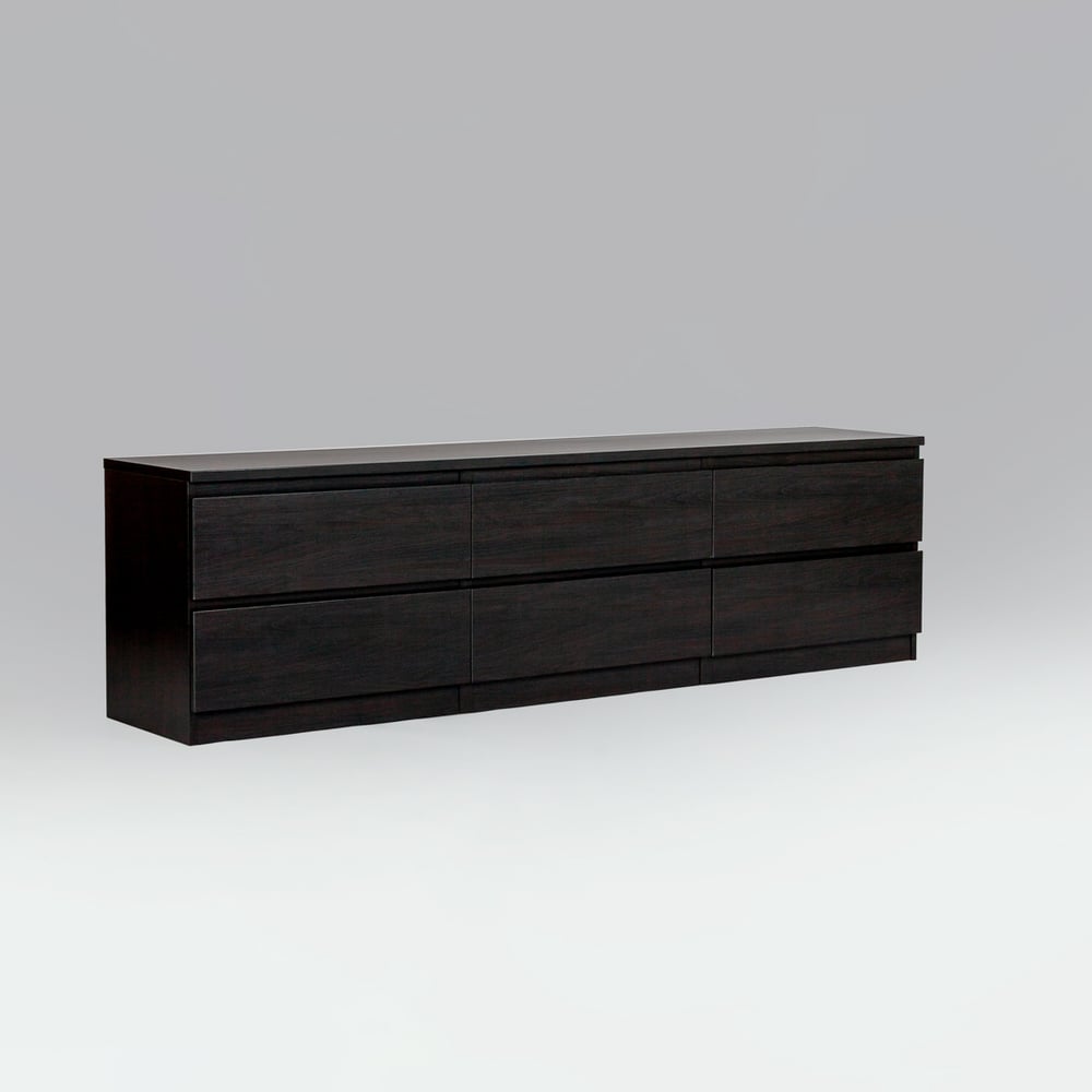 Тумба для ТВ Гуд ЛАКК КАСТОР 6 ящиков, 194x39x54 см, черная, дуб венге 2.03.03.110.5