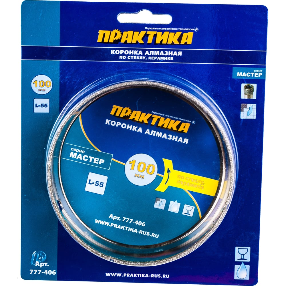 Коронка алмазная по стеклу и керамике (100 мм) ПРАКТИКА 777-406