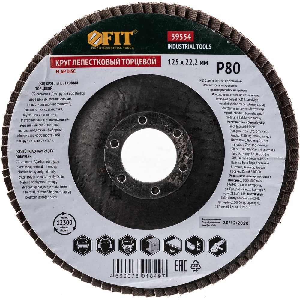 Диск наждачный лепестковый для УШМ (125х22,2 мм; Р80) FIT IT 39554