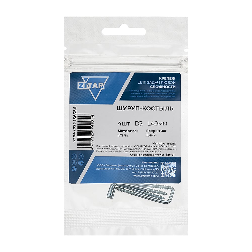 Шуруп-костыль Zitar 3,0x40 4 шт - пакет 136356