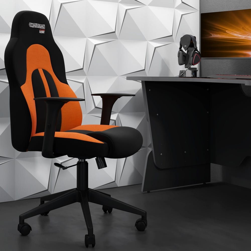 Игровое кресло CHAIRMAN Game 11 ткань черный, оранжевый 00-07096073
