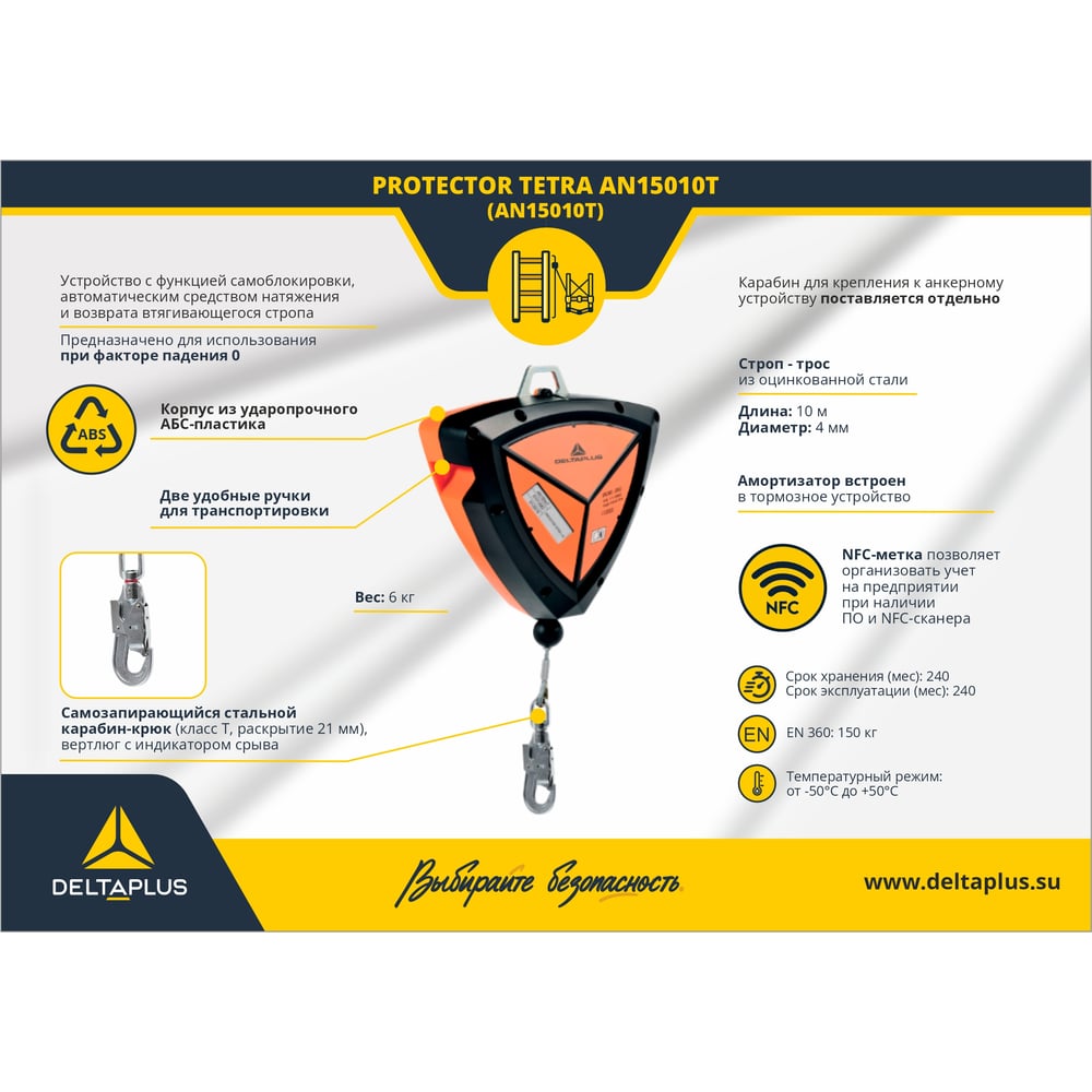 Устройство защиты Delta Plus, трос AM016 - 10 M, р.10, оранжевый AN15010T