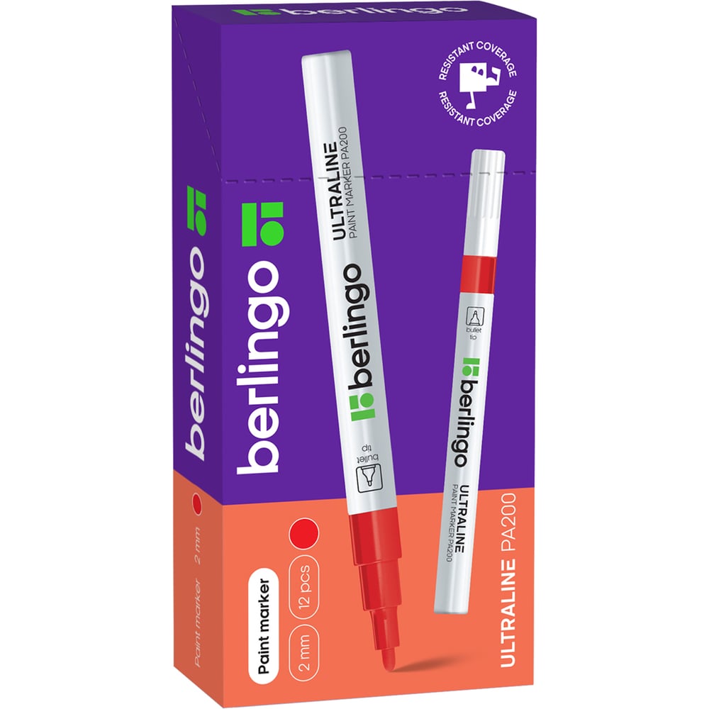 Маркер-краска Berlingo "Uniline PA200" красная, 2мм нитро-основа, 12 шт. BMk_02203