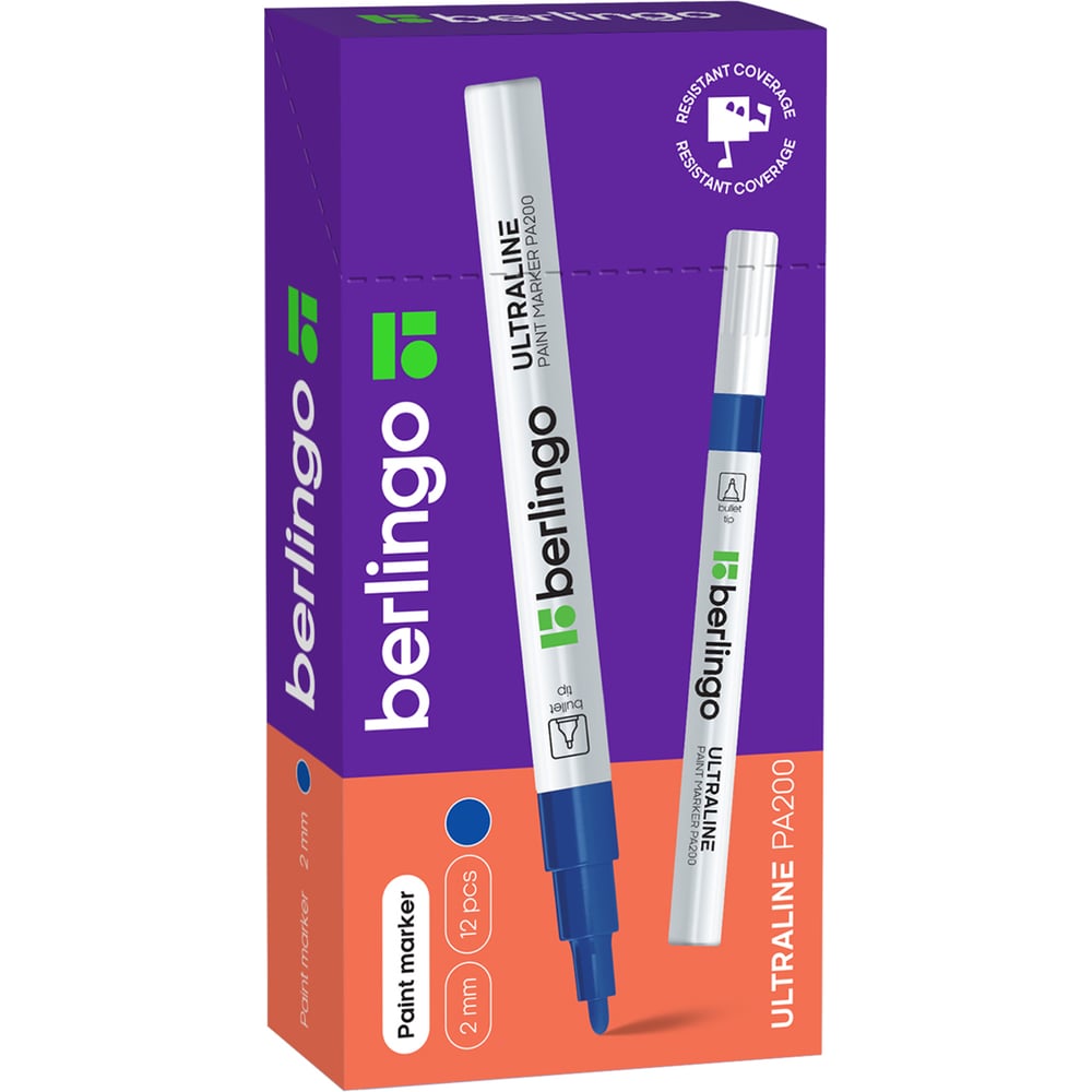 Маркер-краска Berlingo "Uniline PA200" синяя, 2мм, нитро-основа, 12 шт. BMk_02202