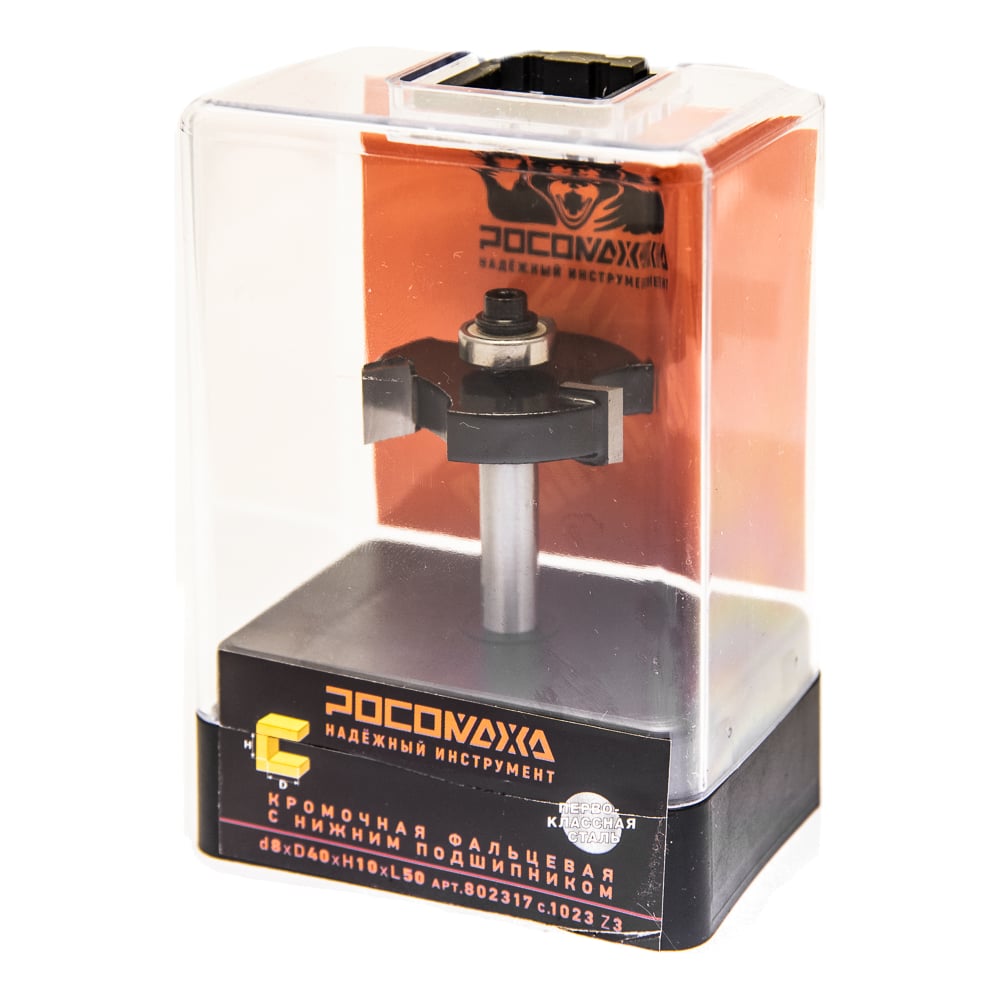 Фреза кромочная фальцевая с нижним подшипником серия 1023 (40x10x50 мм; Z3; хвостовик 8 мм) Росомаха 802317