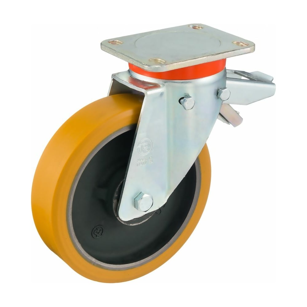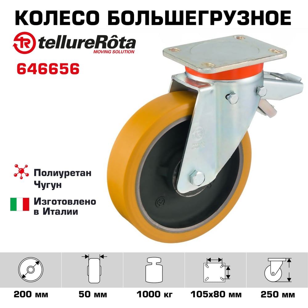 Колесо с вращающейся опорой, пластиной крепления и задним тормозом (200 мм; 1000 кг) Tellure rota 646656