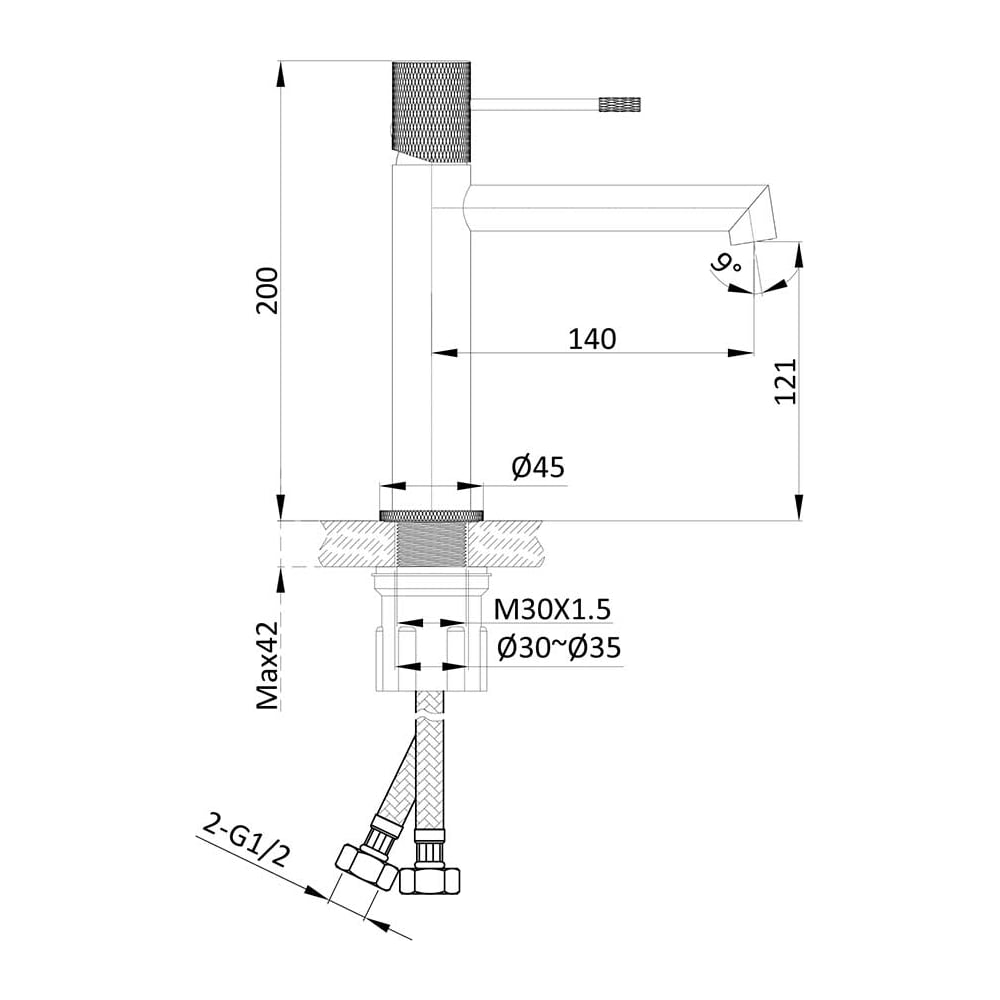 | Диаметр отверстия в раковине | 30-35 мм |