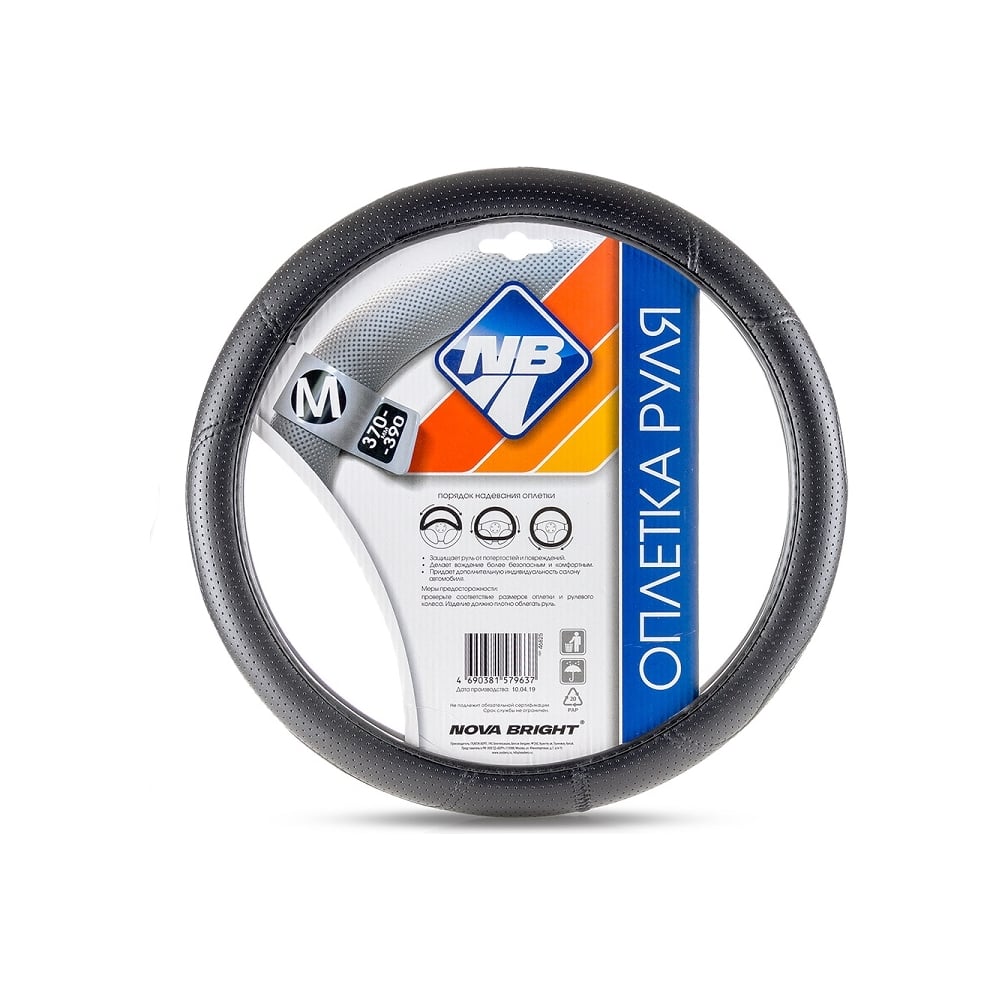 Оплетка рулевого колеса Nova Bright M экокожа, черная, перфорированная, с рельефной строчкой 47357